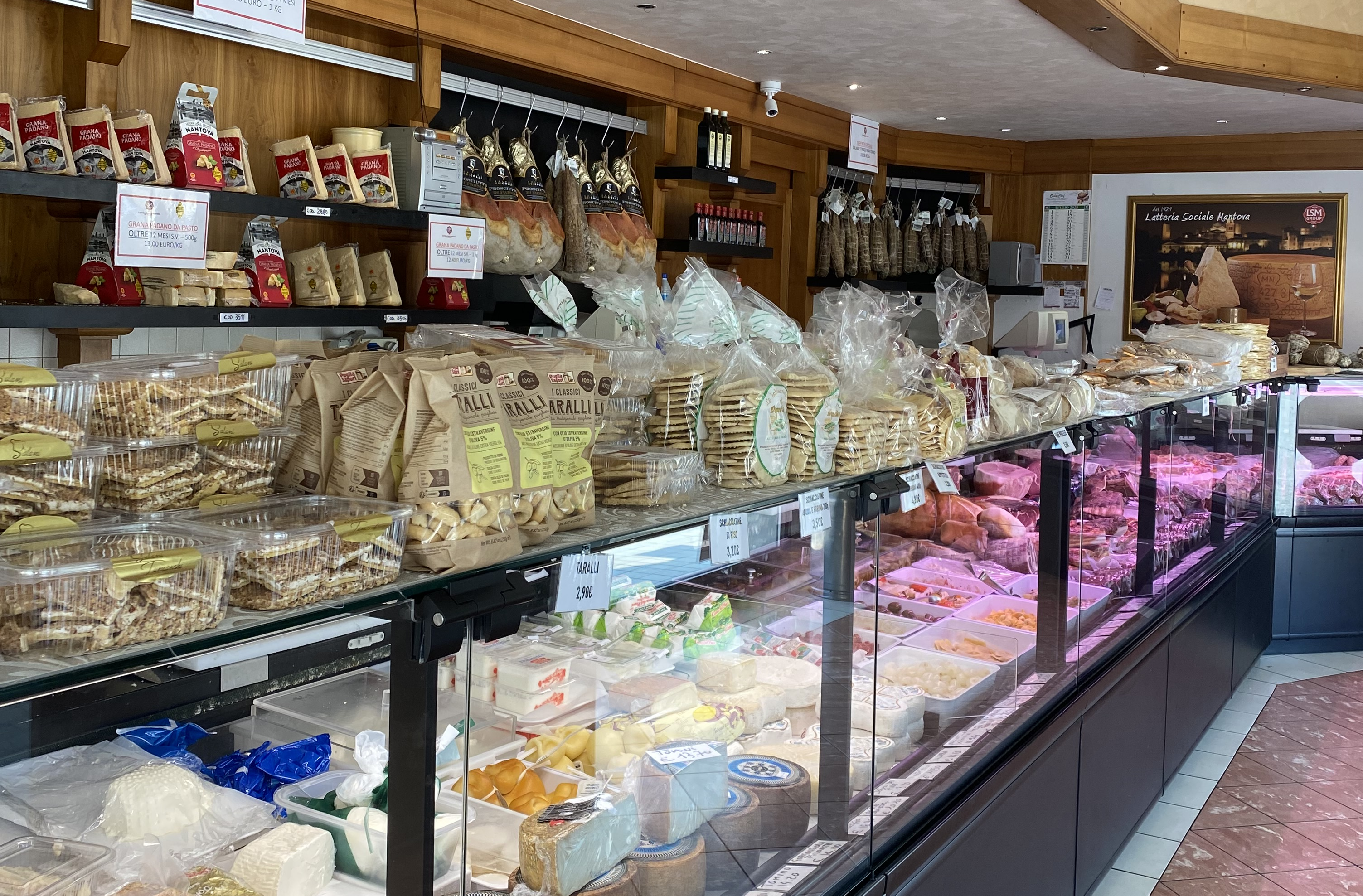 In addition to the products from LSM Group, many other cheese specialties are available, as well as Mantua’s famous pumpkin ravioli, but also sausages, salami, wines, baked goods and sauces, for a delicious and genuine shopping experience.